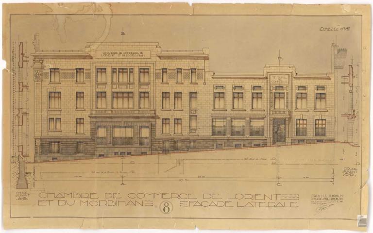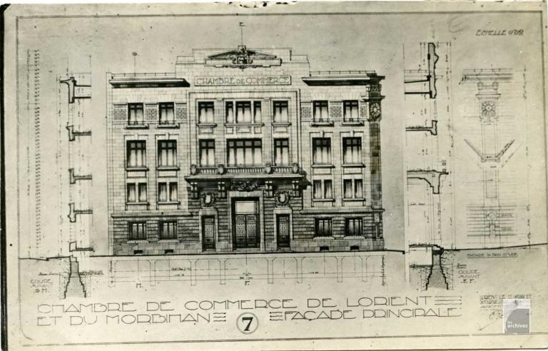 Le siège de la Chambre de Commerce et d’Industrie du Morbihan est inauguré en grande pompe en 1928. Il est situé alors sur le Cours des quais, actuel quai des Indes, devant le pont tournant du port de commerce. La Chambre joue un rôle clé dans le développement portuaire de Lorient depuis sa création au début du 19e siècle. Très tôt, elle milite pour la construction d’un équipement portuaire sur la rivière du Faouëdic. Il n’est donc pas surprenant qu’elle obtient, en 1889, la gérance des premières concessions d’outillage portuaire. Elle est ainsi gestionnaire historique du port de commerce de Kergroise suivi de l’aéroport de Lann-bihoué. Considérée comme un corps intermédiaire par le Code du Commerce, elle établit le dialogue entre institutions publiques et entreprises privées.