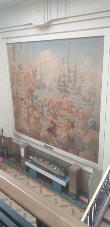 A l’intérieur du bâtiment, l’architecture Art déco est très graphique et soulignée par un escalier monumental en ferronnerie. La verrière zénithale couronne un vaste hall aux accents palladiens. Les œuvres des peintres Pierre Cadre, Arthur Midy et Henri Barnoin illustrent sur ses murs quelques singularités historiques et économiques du territoire dans lequel s’inscrit et agit la Chambre. La plus emblématique est la fresque que Pierre Cadre réalise en 1931 et qui illustre la venue de Madame de Sévigné au port de la Compagnie des Indes en 1689.