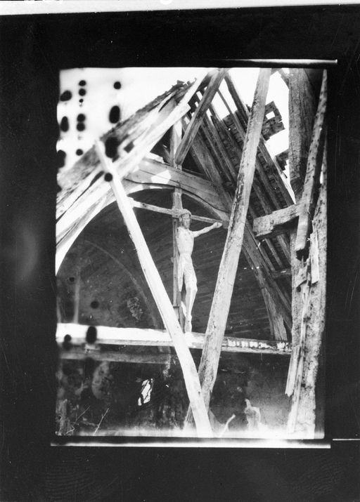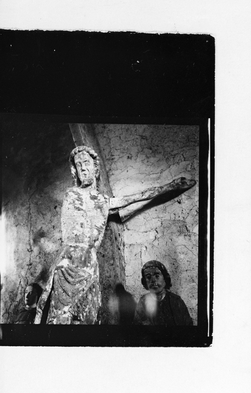 Croix de la fin du 16e siècle ou du début du 17e siècle, provenant de la chapelle Saint-Jean où elle se trouvait encore en 1955.