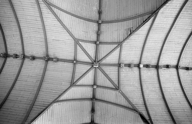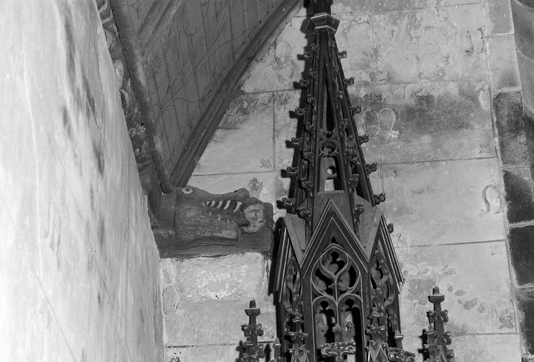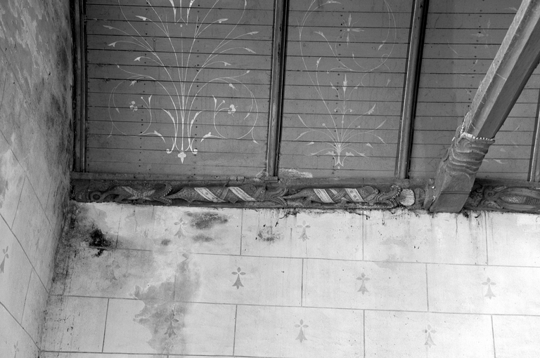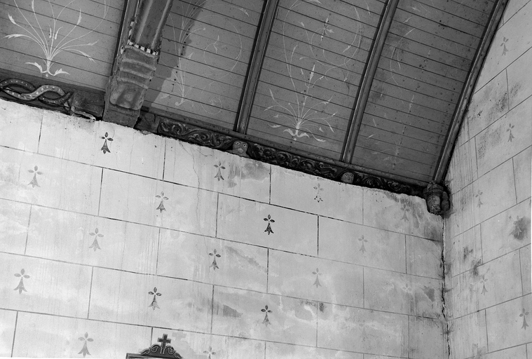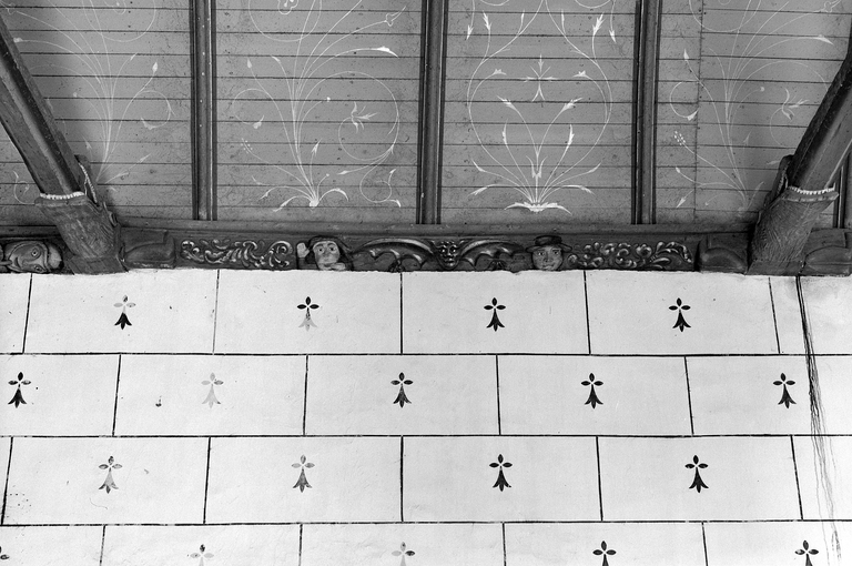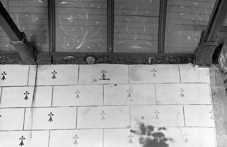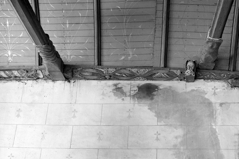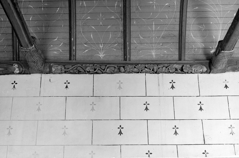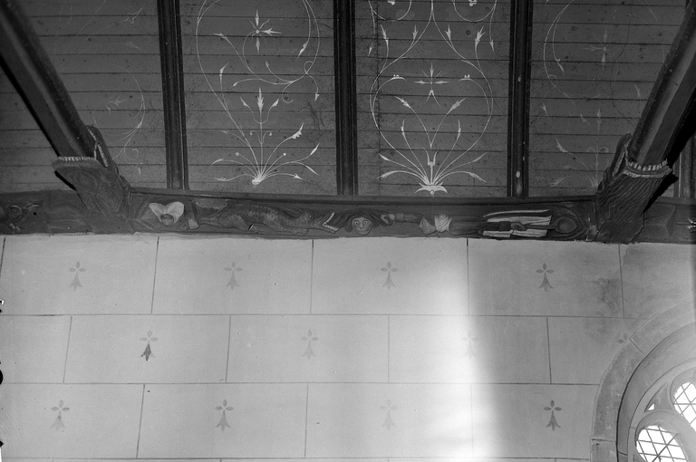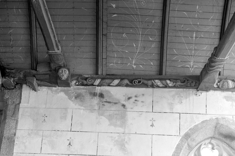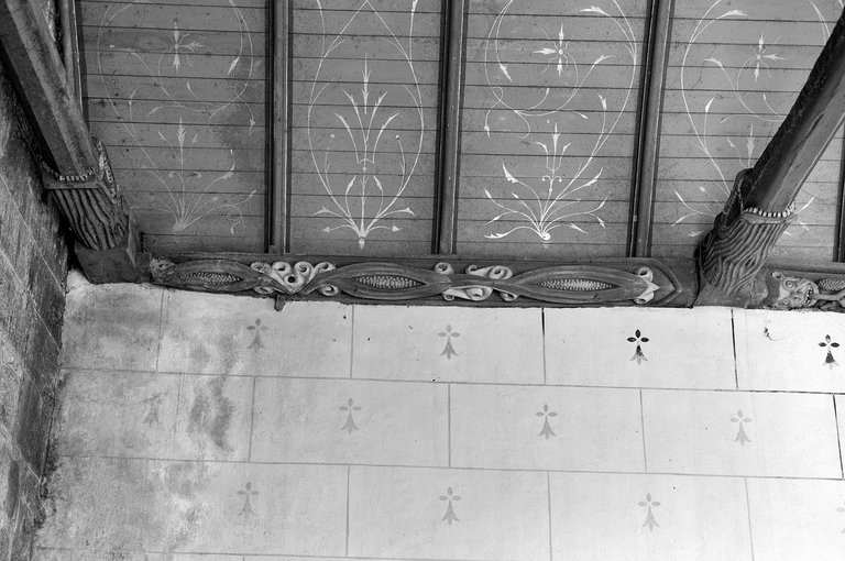 Ensemble de sablières et de blochets de la fin du 16e siècle ou du début du 17e siècle ; repeint par Meunier en 1827 comme le mentionnent les comptes de la fabrique.