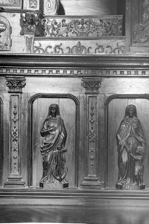 - bois, découpé, mouluré, taillé, décor en bas-relief