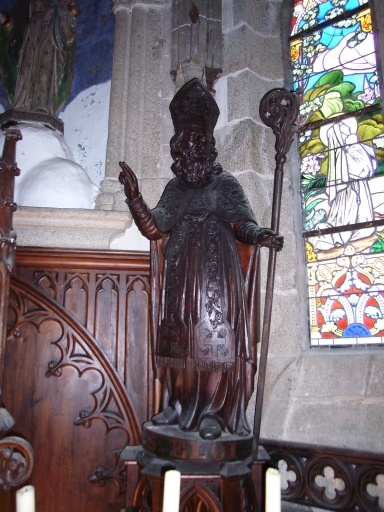 Statue de saint Eloi : dos plat partiellement sculpté ; statue de saint Yves : dos légèrement creux partiellement sculpté.