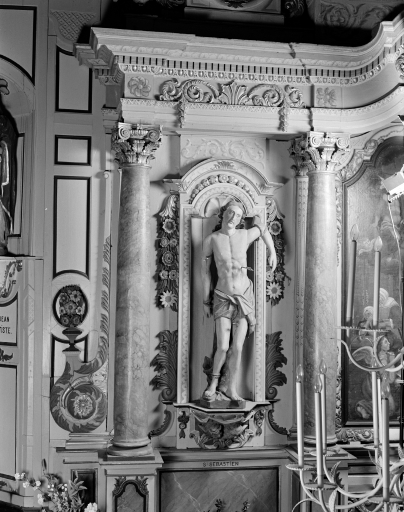 Saint Sébastien a un revers sculpté. Chaque statue est monoxyle.