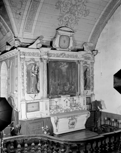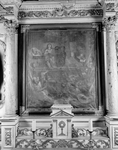 Autels galbés ; colonnes peintes en faux marbre ; tableau central peint à l'huile sur toile.
