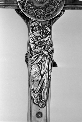 Croix de procession : Christ en croix, Vierge à l' Enfant,