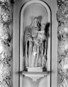 Retable autrefois situé dans le bas-côté nord, disparu lors de la reconstruction de la nef en 1962 ; le profil du lambris couvrant l'ancien bas-côté est apparent.