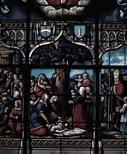 Oeuvre datée et signée (en lettres gothiques, en bas) : A. HUCHER et RATHOUIS MDCCCLXXIX CARMEL DU MANS.