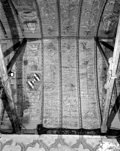 Peinture de lambris par Dupont, peintre de Pontivy, en 1686 sous l'épiscopat de Louis de Coëtlogon. Les armoiries ne correspondent pas à ce personnage. Restauration en 1860 pour M. Sort recteur et M. Guillo-Lohan maire.