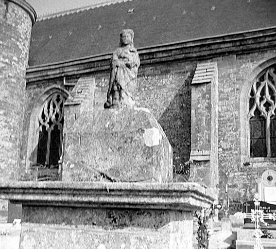 Statue du 16e siècle, plus ancienne que la croix dont le socle est daté 1767.
