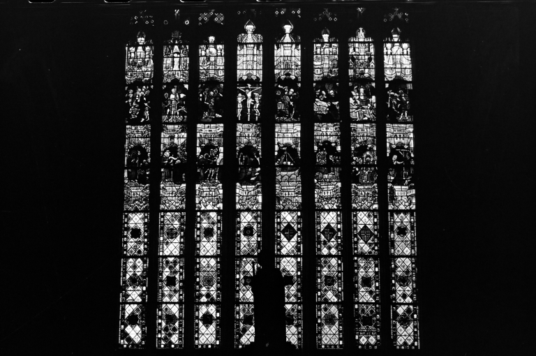 - verre transparent, coloré sanguine sur verre, grisaille sur verre