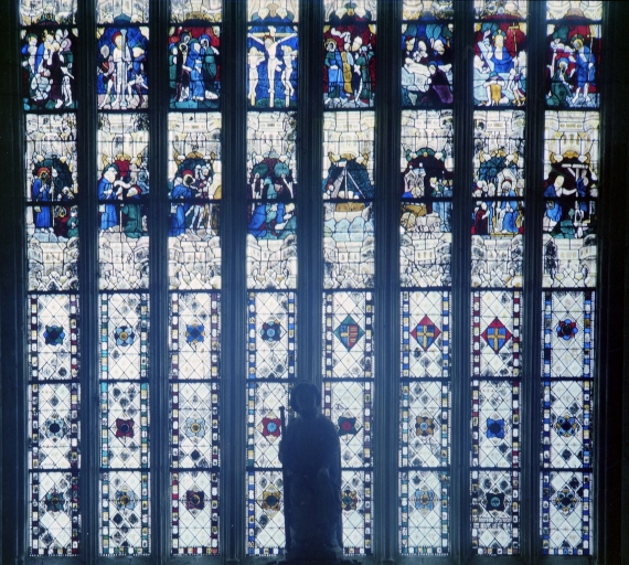Verrière faite par Guillaume Béart en 1402 (signature et date) . Restauration du remplage et de la verrière en 1860-1865.