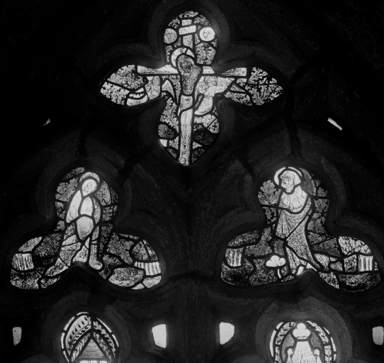 Verrière à personnages : Vie de la Vierge, Calvaire (baie 1),
