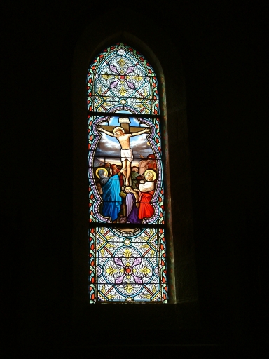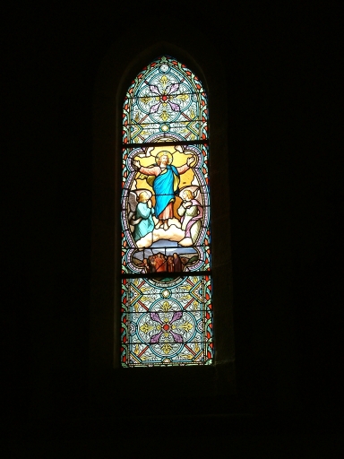 Ensemble de trois verrières figurées : sacré coeur, saint Lunaire, saint Clément