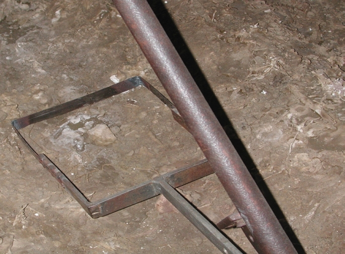 Outil agricole de forme particulière : guidon de vélo récupèré, fixé sur une barre de fer verticale, pourvue d'une petite roue en caoutchouc (roue de poussette). Un dispositif rectangulaire, en forme de u ouvert (en fer) permet le sarclage.