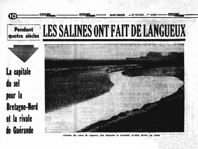 Histoire des salines : du sel dans la baie Dès la préhistoire, le sel fut utilisé pour l´alimentation et la conservation des denrées. Dans la baie de St Brieuc, on a extrait le sel du sable des grèves. L´ancêtre des salines ignigènes : le briquetage : Dans le sud de la Bretagne, le sel est obtenu par simple évaporation de l´eau de mer, ce sont les salines « solaires » ou marais salants. Dans le nord de la Bretagne, faute d´ensoleillement suffisant, la récolte du sel est pratiquée, dès le Bronze final (900 ans avant Jésus-Christ/200 ans après Jésus-Christ), selon la technique du « briquetage ». On fabrique des pains de sel à partir d´une saumure (eau concentrée en sel) que l´on fait bouillir sur un foyer. La technique des bouilleurs de sel gaulois ressemble fort à celle pratiquée des siècles plus tard dans la baie, mais l´état actuel des recherches ne permet pas d´établir une continuité dans l´activité. Les salines ou la technique ignigène : La technique « ignigène » (du latin « ignis » : feu) a été pratiquée du 11e siècle au 19e siècle, sur les Côtes de la Manche (baies de Somme, du Mont St Michel et de St Brieuc). Elle consiste à réaliser une saumure à partir du sablon (sable très fin chargé de sel) récolté sur la grève. Celle-ci sera chauffée et évaporée pour obtenir des pains de sel. Evolution des salines jusqu´à la fin du 18e siècle : Les salines du fond de l´anse d´Yffiniac sont mentionnées pour la 1ère fois en 1084. Les Grévassins vivaient alors principalement de cultures (froment, blé noir, orge). En 1405, les comptes de la châtellenie de Lamballe révèlent l´existence de 4 salines à Hillion. La Bretagne est alors exempte de « gabelle », l´impôt royal sur le sel, mais les seigneurs locaux perçoivent des droits sur celui-ci. Le sel était surtout utilisé par les populations riveraines pour relever des aliments plutôt insipides (avoine, blé noir), conserver les viandes et surtout saler les beurres. En 1742, Langueux comptait 17 sauniers. Marchands de sel : entre mer et terre L´activité salicole s´intensifie à Langueux au cours de la première moitié du 19e siècle. Au coeur des échanges, le sel devient la plaque tournante de l´économie locale. L´importance des salines au 19e siècle : L´importance des salines de Langueux ne cesse de croître pendant le premier tiers du 19e siècle. Le recensement de 1816 dénombre 29 salines à Langueux, puis 47 en 1833, 2 à Yffiniac, 2 à Hillion. Le sel était vendu par les sauniers ou par des négociants dans tout le département et jusqu´en Normandie. Il alimentait les pêcheries et les sécheries de l´Amirauté de Saint-Brieuc. Dans les communes rurales, il était échangé contre des céréales et certains légumes. L´activité salicole profitait aux maraîchers des communes proche de la baie : ceux-ci aidaient les sauniers à récolter le sablon et les ravitaillaient en bois. La cuisson de la saumure nécessitait en effet plus de 4 000 fagots par an par saline. Selon le relevé de cadastre (J. H. Clément) : Le cadastre des Grèves de Langueux de 1847 recense 23 « usines à sel » de taille variable, elles peuvent atteindre 40 m2. Les salines ou usines à sel étaient concentrées sur une étroite frange littorale à proximité des habitations. Production du sel dans la baie au 19e siècle : En 1835, une saline pouvait produire 5000 kg de sel par an et fournir la consommation annuelle de 2500 personnes. La production de l´ensemble des salines de la baie représente la consommation de près de 42 000 personnes à cette même époque. Gabelous et trafiquants : En 1790, la gabelle est supprimée par l´Assemblée constituante. Mais en 1806, Napoléon instaure un droit sur la production de sel, applicable sur tout le territoire. Les douanes sont chargées de la répression des fraudes. En 1808, ces activités sont assurées par deux brigades de douaniers appelés « gabelous », 6 hommes à Yffiniac, 12 aux Grèves de Langueux. Pour échapper à l´impôt, les sauniers s´adonnent au trafic et à la contrebande ; ils vendent dans les campagnes le sel noir, résidu de mauvaise qualité qui contenait beaucoup de plomb. "Un enfant de nos grèves portait sur le dos le sel de contrebande pour le vendre dans les fermes voisines de St Brieuc. Traqué par les agents de police, il les suit devant M. Le Procureur du Roi. Arrivé là, quel désappointement ! Ils ne voient plus sur l´épaule qu´un sac complètement vide. Notre jeune industriel avait fait une large ouverture avec son couteau au fond du sac et semé sans bruit le sel qui devait le perdre" (anecdote de contrebande relevée auprès des archives communales vers 1870). La fin des salines : Plainte des sauniers lors du projet de dessèchement de l´anse en 1833 : On verra si la suppression des salines ne leur porterait pas un coup terrible, si cette commune, aujourd´hui peuplée et florissante, ne deviendrait pas déserte et misérable. La fin d´une activité : Vers 1860, le déclin du sel est général dans tout l´Ouest. En 1852, Langueux ne compte déjà plus que 10 ou 12 salines en activité sur les 45 existantes. Les nombreuses taxes, les conditions de travail précaires et la concurrence avec le sel raffiné eurent raison de l´industrie du sel dans les grèves. La rusticité des bâtiments et l´action corrosive du sel ont rendu impropre leur reconversion en maisons d´habitation. On constate qu´aucun vestige matériel, témoin de l´activité des salines, n´a pu être conservé. Lorsque l´industrie du sel périclita, les sauniers se consacrèrent principalement au maraîchage qu´ils exerçaient déjà de manière saisonnière. Ils continuèrent à parcourir les divers marchés pour écouler leur production. Cette mutation préfigure la future et principale activité des Langueusiens.
