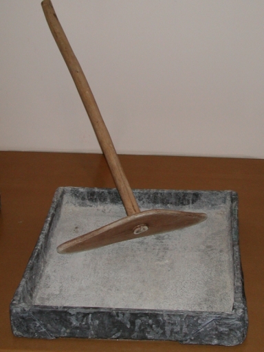 Maquette d'une saline du 19e siècle. Reconstitution à l'échelle d'un atelier de saunier, réalisée en bois, plâtre, polyester et carton avec les scènes suivantes : Les grèves sont labourées. Les sauniers ameublissent le terrain. Le sablon est dragué avec un havet (grand râteau). Le sablon séjourne sur la grève. Le sablon est transporté dans les tombereaux. Une saunière va puiser de l´eau de mer dans la réserve. Les sauniers taillent 25 mottes de sablon dans l´erreu. Les mottes sont déposées sur la fosse à filtre. Un saunier verse de l´eau de mer sur la fosse à filtre. Usine à sel. Maisons de sauniers.