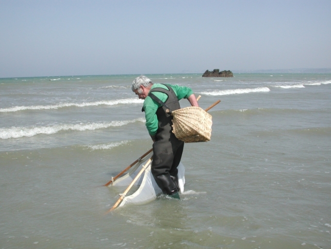 La pêche à la crevette grise ou "chèvre" représente une activité importante de la pêche à pied. Le havenet en croix permet de racler le sable en poussant le havenet devant soi, avec les patins d'usure ou la planche de bois ("l'essuiblais") qui écarte les deux bras ou quenouilles, tendant le filet. La pêche au "havenet en toile claire" pour ramasser le chevrin (frai de crevette grise), appelé encore pouillen à la Cotentin ou pouillot à Hillion, est connue depuis la 1ère moitié du 19e siècle grâce à la pêche au maquereau en bateau, à la ligne au moyen de l'affare que procure le "gueldre" ou chevrin, pêché pendant le printemps et l'été. Le pouillen pouvait aussi se pêcher à la senne. Le décret du 4 juillet 1853 a supprimé l'usage du havenet en toile tendue sur deux bâtons croisés, et stipule toutes les conditions d'utilisation des divers types d'havenets, de leurs filets et maillages. Cependant, la have à chevlin sera toujours utilisée par et pour les pêcheurs de maquereaux de Jospinet à la tour de Cesson, sur la côte est de la baie de Saint-Brieuc. Le pouillen était conservé au frais dans des feuilles de choux au fond du jardin par les pêcheurs.