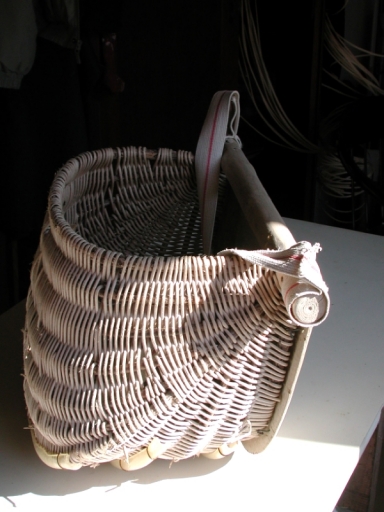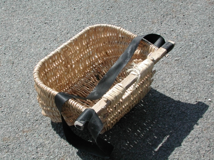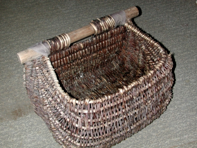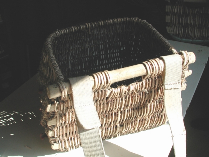 Cette hotte à crevettes, utilisée aussi pour les lignes de fond est de dimension moyenne : longueur 32 cm, largeur 25 cm et profondeur 28 cm, est réalisée en osier, avec un manche en hêtre, des arceaux en orme et les membrures en osier (Jean Guihot). Les hottes du type Trottin de Dahoüet se partageaient avec les hottes de Roger Boulaire de Hillion le marché des pêcheurs à pied. Cependant, chacun pouvait aussi confectionner ses propres paniers de pêche, comme Jean Aubry de la Cotrentin, qui réalisent ses plans et gabarits traditionnels. Les hottes Trotin avaient un fond en contre-plaqué, des membrures en osier et des arceaux en orme. Les hottes d'Hillion étaient entièrement réalisées en osier épluché : hotte pous les palourdes assez profonde (17 x 23 x 26 de profondeur). Hotte de pêche pour les crevettes, entièrement réalisée en osier épluché en 1950 par Roger Boulaire d'Hillion. Ses dimensions : 45 cm de longueur, 32 cm de largeur et 28 cm de profondeur. Les hootes à poisson sont en osier brut avec des montants en orme. Dimensions : 40cm de longueur, 33 cm de largeur et 38 cm de hauteur.