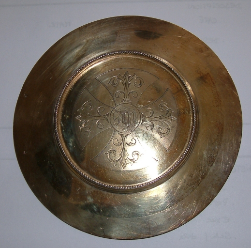 Poinçon de fabricant DEMARQUET sur le pied et LR sur la coupe avec poinçon de Minerve. LR sur la patène.