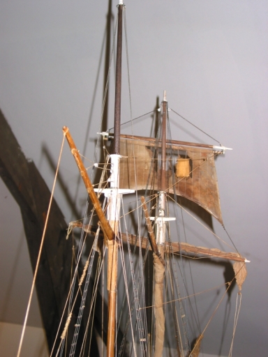 Maquette en forme d'une goélette islandaise d'après un plan de formes original du chantier Gautier de Saint-Malo. A l'origine, le plan de formes était réalisé perpendiculairement à la quille. Cependant, pour des raisosns esthétiques, Alain Marie Gautier a redessiné les plan perpendiculairement à la flottaison, pour mieux apprécier les lignes d'eau. Goélette construite en différents bois pour montrer les lignes de formes de la coque. Le gréement est seulement suggéré avec la forme et la longueur des espars. Longueur de la coque : 90 cm. Longueur hors tout : 130 cm.
