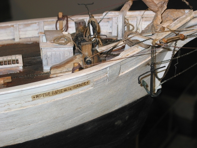 Le chantier François Gautier, père et fils, a construit de nombreux trois mâts et goélettes de pêche et de commerce pour les armateurs de la côte du Goëlo à la côte du Penthièvre jusqu'aux bords de la Rance et même Cancale. Originaire du port de Dahouët, François Gautier avant d'installer son chantier à Saint-Malo, aurait construit deux goélettes sur le port de Dahouët pour le compte d'armateurs dahouëtain. Alain Marie Gautier, petit fils de F. Gautier a réalisé cette coque d'après les plans de goélette, qu'il a conservés avec les archives du chantier. La maquette de la goélette à hunier "Notre- Dame-de-la-Garde", réalisée en 1980 par Alain Marie Gautier a été déplacée au Musée du Bateau de Douarnenez, où elle se trouve toujours actuellement dans les collections. Cette goélette aurait été construite à l'origine à Binic pour le compte de l'armateur dahouëtain Le Péchon. Cette maquette est actuellement la propriété du Musée du Bateau de Douarnenez.