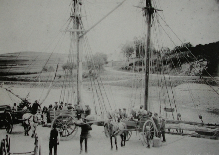 L'essor du commerce à Dahouët du Moyen-Age à l'époque contemporaine Pendant la période du Moyen-Age, le port de Dahouët fut le débouché maritime de Lamballe surtout dans l'Angleterre du Sud-Ouest : 13 navires de Dahouët sur 36 navires étrangers entre 1381 et 1400, malgré la vétusté des aménagements du port, qui ne permettaient pas de recevoir des tonnages accrus. De plus Lamballe qui, contrairement à son ancienne rivale Saint-Malo, a payé sa fidélité au duché puis à la Ligue par des pillages multiples des royalistes, ne peut développer son port avant le 19ème siècle. Il fallut attendre la reprise de l'activité de la capitale du Penthièvre pour voir se concrétiser la construction de la route Lamballe-Dahouët et le déroctage de la grande passe du port. La construction des quais à Dahouët et l'ouverture de la nouvelle route de Lamballe en 1803, allaient marquer le démarrage réel du port et l'essor du cabotage. Le 19ème siècle : siècle des épopées maritimes Ce ne fut qu'en 1815 que se termina la guerre maritime franco-anglaise, qui ne permettait les expéditions commerciales et la grande pêche que pendant les trêves. D'autre-part au 19ème siècle, la misère sévissait dans les campagnes, et seule la reprise de l'activité de grande pêche après ces guerres de l'Empire allaient permette de sauver de la famine les populations littorales engagées dans cette épopée maritime, qui se développa en baie de Saint-Brieuc jusqu'en 1862, pour le flottille morutière de Terre-Neuve (avant l'épopée islandaise). Une industrie maritime était née en Côtes du Nord, de loin la 1ère industrie du pays, après le déclin de l'industrie toilière. Pendant la décennie allant de 1820 à 1830, six bateaux de commerce vont être armés par des négociants lamballais : La Joséphine, 29 tonneaux, armement Rouxel, capitaine Rozé Les Trois Soeurs, 54 tonneaux, armement Carfort, capitaine Laurent Hamonet L'Alcyon, construit à Dahouët, 28 tonneaux, armement Quérangal et Cie, capitaine Derlot La Sidonie, 180 tonneaux, armée par trois négociants associés Le Calvados, 63 tonneaux, armement Le Bret, capitaine Hippolyte Grimaud. Ces navires transporaient surtout des chargements de blé pour les ports de Brest, Saint-Malo, Le Havre. Certaines années, on y embarquait jusqu'à 4000 tonneaux de cette denrée. Vers 1835, on prolongea le court quai qui existait alors. Le commerce triangulaire Plusieurs armateurs de Dahouët armaient pour la grande pêche en Islande, tandis que des importateurs-exportateurs, telle la maison Dagorne depuis 1876, affrétaient des goélettes emportant entre 2500 et 1000 tonnes de pommes de terre vers le Portugal, qui les utilisaient comme semences. Ces goélettes revenaient chargées de sel, qui, entreposé dans les "greniers à sel", était ensuite chargé sur les navires en partance pour Islande et utilisé pour conserver le poisson séché sur les bancs. Le bâtiment chasse-marée le « Saint-François » de l´armateur Rubin de Ray, construit en 1829 à Saint-Vaast la Hougue, était inscrit au registre Veritas et assuré en 1857 par la Cie Universal Lloyd pour ce commerce. A la même époque, le navire bisquine Saint-François, appartenant depuis 1839 à plusieurs quirataires, dont pour un quart au capitaine Le Bret et un autre quart au meunier Sorgniard, fut vendu par les veuves respectives en 1851 à un sieur Victor Henri Visdeloup de la Villebéart. Le commerce maritime à la voile connut sa première crise avec la concurrence du vapeur et du chemin de fer, après la guerre 1914-1918. Les Lamballais préférant le chemin de fer au bateau pour expédier leurs marchandises. La pomme de terre "Chardonne" était fort appréciée des Portugais et servait de monnaie d'échange contre des haricots. Mais l'année 1915 vit un ralentissement de ce trafic. Si le commerce des grains fut actif durant cette période, il n'atteignit cependant jamais l'importance de celle des autres denrées et notamment celle de la pêche islandaise. En 1945, les besoins en matériaux de construction vont faire revenir les bateaux chargés de bois du Nord, d'ardoises, de ciment. Cependant, ces caboteurs repartaient à vide, alors que le Penthièvre représentait toujours une source de débouchés. C'est alors que les élus de Pléneuf se tournèrent vers les maisons Auffray-Briend et Morin de Lamballe, spécialisés dans le commerce des produits du sol. Paul Morin à la tête du "Comptoir Agricole et Commercial du Penthièvre" depuis 1930 put racheter la maison Quémart en 1953, et se joingnt à Briend pour assurer le négoce maritime de Dahouët, faisant entrer des cargos de 800 tonneaux dans le port de Dahouët entre 1957 et Du 1er septembre 1959 au 30 juin 1960, une dizaine de petits caboteurs amenèrent à quai en 44 voyages 2535 tonnes de sable, 2630 tonnes de maërl, 440 tonnes de superphosphate et autres marchandises, alors que 12 cargos étrangers, hollandais, allemands, anglais venaient charger 440 tonnes de blé pour l'Allemagne, 2663 tonnes de blé et 598 tonnes de pommes à cidre pour l'Angleterre. Pendant l'année 1964, 43 caboteurs et une cinquantaine de sabliers fréquentèrent le port de Dahouët, pour un tonnage global de 36800 tonnes. Le premier caboteur qui entra au port après l'armistice fut le "Pomelin" de Paimpol, capitaine Henri, chargé de 150 tonnes de ciment en 1948. De nouveaux entrepôts furent construits dans la côte de Fort-à-Faire. L'immeuble du Pont-Neuf servit de magasin d'accueil comme les anciens hangars Carfantan sur le port. Toutefois, le port seulement accessible à marée haute et d'un évitage difficile allait subir la concurrence du port du Légué, où des travaux importants fuent engagés. Le décès brutal et consécutif des deux négociants allaient préparer le lente agonie du port et sa fermeture au commerce en 1975 ; à l'heure où la pêche à la coquille Saint-Jacques et la plaisance commençaient à donner une autre