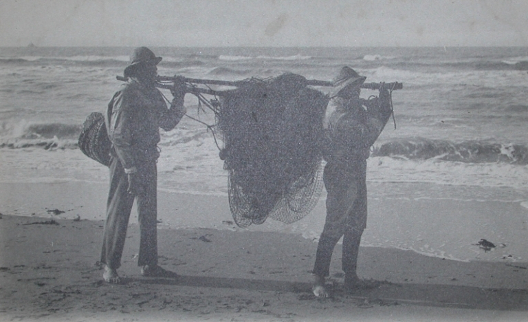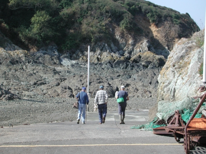 Pêches d´estran Les pêches d´estran à Dahouët étaient davantage l'usage des habitants de Dahouët ou du Val-André, proches du Verdelet, qui pouvaient disposer de nombreuses pêcheries au 18ème siècle et jusqu´à la fin du 19ème siècle ; par la suite, une véritable réglementation de la pêche à pied et l´interdiction totale des pêcheries (loi de 1851) furent instaurées. Toutes les techniques de pêche à pied sont représentées sur le littoral du Val-André, en particulier la pêche aux araignées de mer, la pêche aux crevettes et aux crustacés, dans la Verdière, et surtout la pêche à la « m´nuse » (pêchée au dranet), servant de boëtte pour la pêche aux maquereaux. Les pêches du bord à la ligne se pratiquaient à la pointe de la Lingouare, en particulier la pêche au mulet. Cependant, c´est la Verdière du Verdelet, qui représente le territoire des pêches les plus fructueuses, avec un estran recouvert d´herbiers et de champs d´algues, parcouru de petits chenaux, où viennent se souiller les homards et les congres (témoignage de Jean Clément). Néanmoins, cette Verdière offre aujourd´hui une pêcherie déserte : les herbiers ont disparu et leurs habitants se font rares. Le pont du Verdelet découvert aux grandes marées voit passer les pêcheurs à pied, qui reviennent souvent bredouilles ou avec quelques grosses huîtres, qui ont remplacé les coquillages plus nobles comme les ormeaux et les palourdes. La pêche à pied contemporaine Le repérage aérien effectué par les agents de l'IFREMER et de la DDASS des Côtes-d'Armor le jeudi 11 août 1995 par une marée de coefficient de 106 a permis de dresser, dans le cadre du SMVM de la baie de Saint-Brieuc, une carte dénombrant les pêcheurs à pied, un jour de grande marée sur l'ensemble du littoral de la baie (Schéma de mise en valeur de la mer). Sur les sites les plus fréquentés de l'estran de Pléneuf-Val-André, ont été dénombrés 61 pêcheurs à pied sur la Ville Berneuf, 81 sur les Platières, 159 autour de l'estran de Dahoüet et 263 au Verdelet, soit 564 personnes. La pêche à pied sous l'Ancien Régime Dans son enquête sur la pêche côtière et la pêche à pied, en 1726, pour la partie intéressant les communes de la baie de Saint-Brieuc, Le Masson du Parc, dénombrait seulement dans la paroisse de Pléneuf, la Ville Pichard et Dahouët seize pêcheurs à pied, dont six dénommés "laboureurs", un seul "cordonnier", deux pêcheurs en mer, un poissonnier et un maçon. Il ne signalait cependant aucune embarcation. Les pêches à pied et à la côte pratiquées sous l'Ancien Régime utilisaient les lignes pour les maquereaux de mai à juillet, la seine et les filets depuis août jusqu'à la fin du carême, pour les soles, plies, carrelets et turbots. Des filets sont tendus sur des piquets à marée basse, pour pêcher des « barcets », des plies et de petits mulets. Les huîtres draguées dans les roches à la fin avril ne sont bonnes qu'à mettre en ragoût, on pêche aussi des moules, des congres, des anguilles ou des homards, on prend des crabes ou des chevrettes avec le « haveniau », on tend des lignes de mer basse dans les « ains » par rangées, appelées « harouelles » dans le pays ; on y prend des plies, soles, bars, « quitons ». On prend sur les rochers des bernicles ou des « bigourdes ». On voit des marsouins, qui sont capturés échoués parfois sur les grèves. On va à Saint-Malo faire provision de la morue verte, du hareng ou autres denrées. D´après un texte manuscrit de Le Brun, préparatoire au Traité des Pesches de Duhamel Du Monceau, daté de septembre 1727 (Musée maritime de Tatihou, département de la Manche). Les outils Nous avons repéré 17 outils relevant des pêches d'estran, dont la plupart provienne de l'Atelier du Patrimoine de Dahouët. L'outil de pêche à pied emblématique de la côte de Penthièvre est certainement le havenet en croix, dont un exemplaire unique avec patins en corne de boeuf est conservé au musée de la Briqueterie de Langueux.