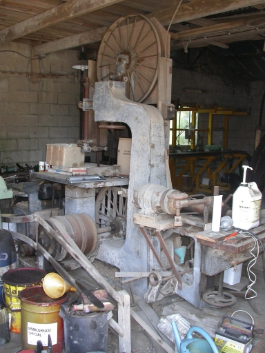 Cette scie à Ruban Gillet a été installée dans les années 1960 dans le second atelier de la scierie Courtel. Actuellement, elle est conservée dans l'atelier de réparation.