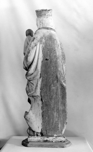 La statue est bien conservée malgré la peinture écaillée et l'absence de l'attribut de la Vierge.