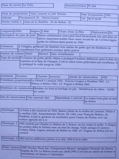 L'histoire de ce bateau (chantier d'origine ?) reste à complèter pour comprendre l'évolution de la construction navale en Bretagne Nord, selon les métiers pratiqués.