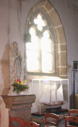 Cette maquette réalisée par Louis Bonny, orginaire de Locquémeau, a été exécutée à Binic, lorsque son auteur habitait cette commune, très fréquentée au début du 20ème siècle par les goélettes de grande pêche. Elle représente une goélette "moderne", au summum de la construction paimpolaise et binicaise (chantiers Bonne-Lesueur et Chevert), gréée avec double hunier et bôme à rouleau, avec une voile d'étai, par beau temps. Cette maquette offerte à l'église de Locquémeau, comme ex-voto par Louis Bonny avant les années 1980, est de très belle facture.