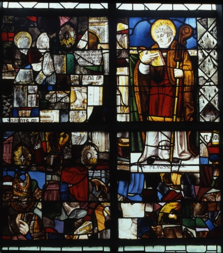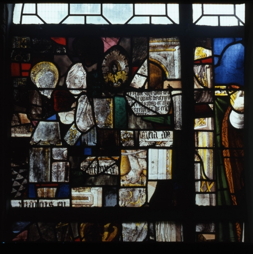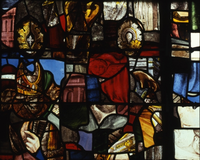 - verre transparent, grisaille sur verre, sanguine sur verre, jaune d'argent