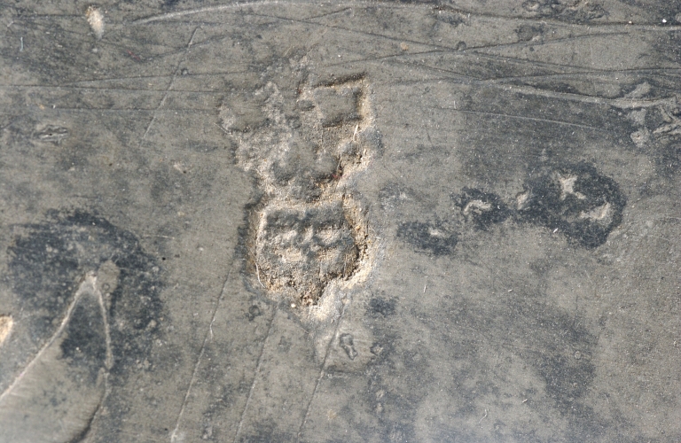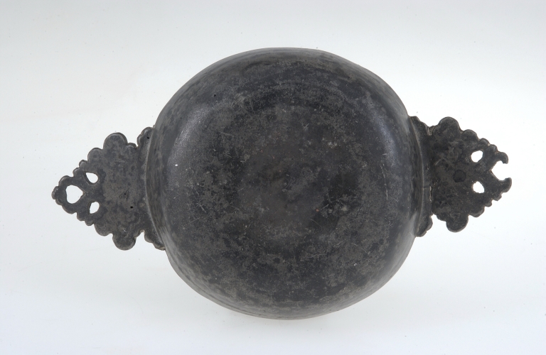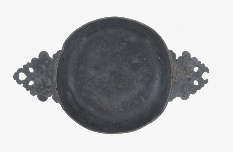 Poinçon : ST BRIEUC 1691, avec au centre un C couronné (sur une oreille). Poinçon : initiales MX séparées par une hermine surmontée d'une fleur de lys couronnée (sur l'autre oreille).