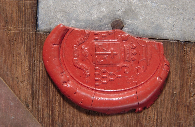 Poinçon de garantie : crabe 1848 ; inscription sur une étiquette collée sous le fond : DESURY, ORFEVRE JOAILLIER, BIJOUTIER, CISELEUR ET GRAVEUR A ST BRIEUC ; inscription liturgique au revers de la Croix ; armoiries (croix et ancres en sautoir sur champ d'azur) de MGR. LE MEE, EVEQUE DE SAINT BRIEUC, 1841 1858.