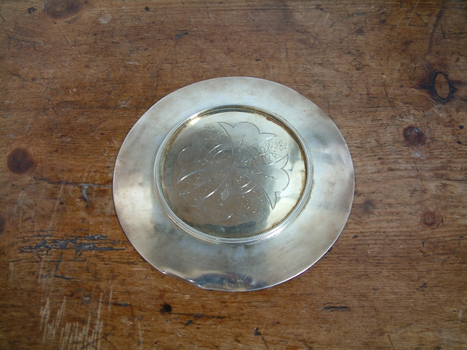 Minerve et poinçon BN sur la fausse coupe en laiton. Les deux mêmes poinçons sur la coupe, sur le pied et la patène.