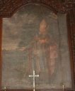 Antependium avec tableau à cadre sculpté entre deux panneaux ornés de pilastres et de chutes de fleurs. De chaque côté de l'autel coffres latéraux avec bandeau décoré de rinceaux et fleurs. Deux gradins, un tabernacle postérieur à l'ensemble et un retable à deux niveaux. Le tableau central est encadré de deux colonnes et d'une niche de chaque côté, entre deux colonnes. Au second niveau un panneau central avec niche entre chutes de fleurs et pilastres.
