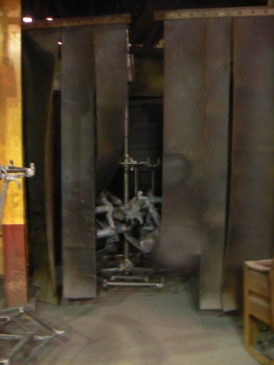 Cette machine sert à enlever par grenaillage les aspérités et à nettoyer les petites pièces. Les pièces sont posées sur un axe vertical tournant qui permet d'obtenir une plus grande régularité d'abrasion.