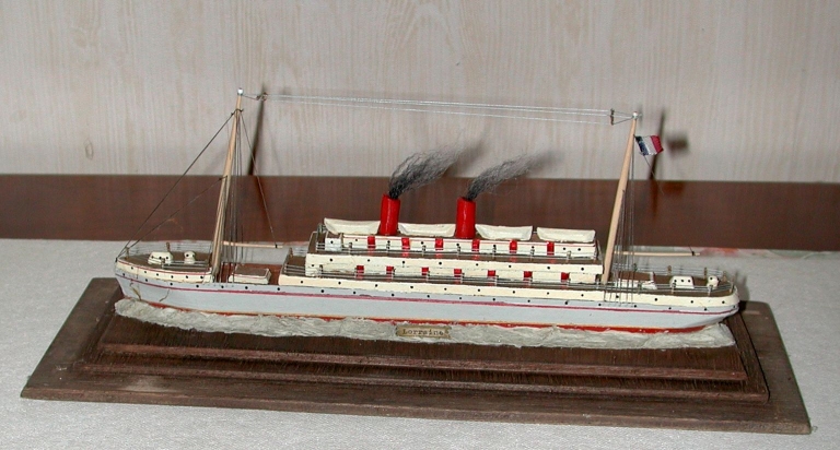 La maquette en bois du navire Cap-Hornier est réalisé en bois dans la masse, sans plan de référence. Elle est gréée de 4 mâts (en bois) avec un gréement courant en textile (cordage synthétique et naturel) et des voiles en tissu synthétique. Elle est présentée sur un support en bois, sous globe. Nous avons repéré mais non étudié une autre maquette, représentant un cargo mixte ravitailleur des Terre-Neuvas en 1914 "Le Lorraine".