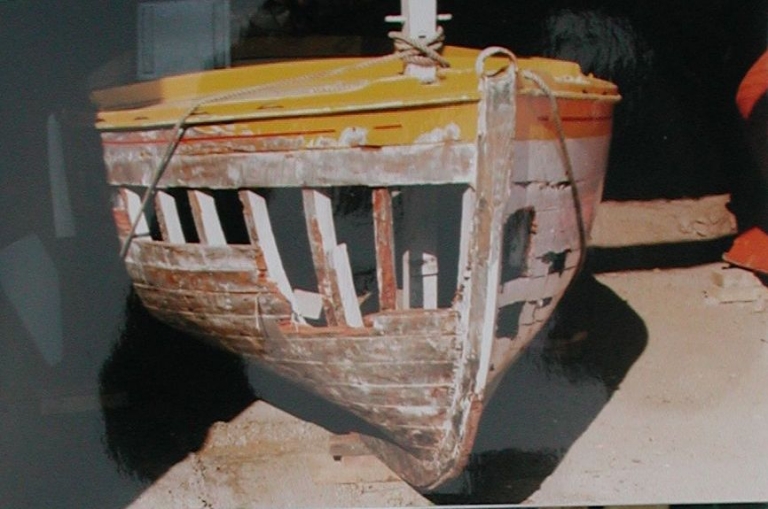 La construction de ce canot creux est à franc bord, membrures de 4 cm de section en chêne pour les membrures franches et en acacia ployé pour les membrures de la charpente à l'avant (en alternance) sur bordées en pitchpin, quille en fonte. L'étrave est ronde, le tableau arrière mesure 120 cm de large. La coque mesure 5, 06 m de long, 2, 07 m de large au maître bau et le tirant d'eau est de 0, 83 m. Gréement aurique avec bout-dehors.