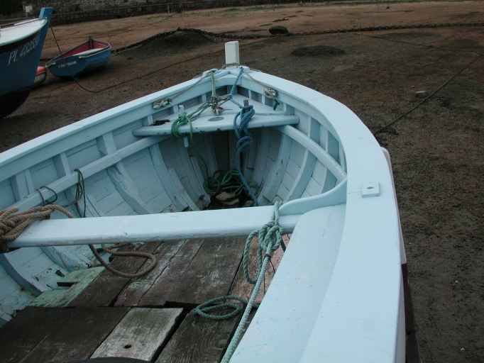 Canot entièrement creux construit à franc bord, avec des membrures franches, sciées. Il dispose d' un banc de nage. Gréement : misaine bômée. Un grand triskell est peint en noir sur l'étrave du côté babord.