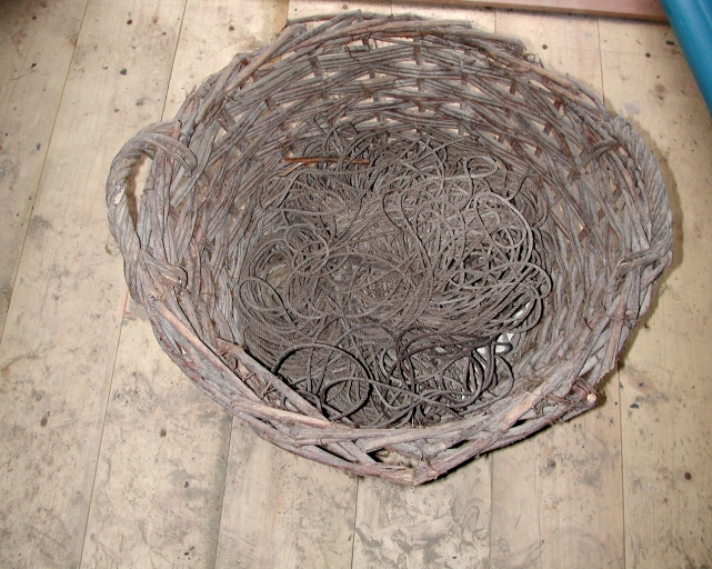 Cette manne est confectionnée en clisses de châtaignier, avec un fond solide tressé et un haut évasé. Elle est équipée de deux anses. Cette manne peut contenir plusieurs pièces de lignes ou empis, munis d'ameçons et de flotteurs en liège.