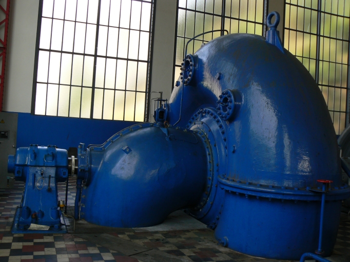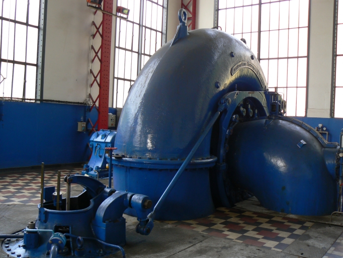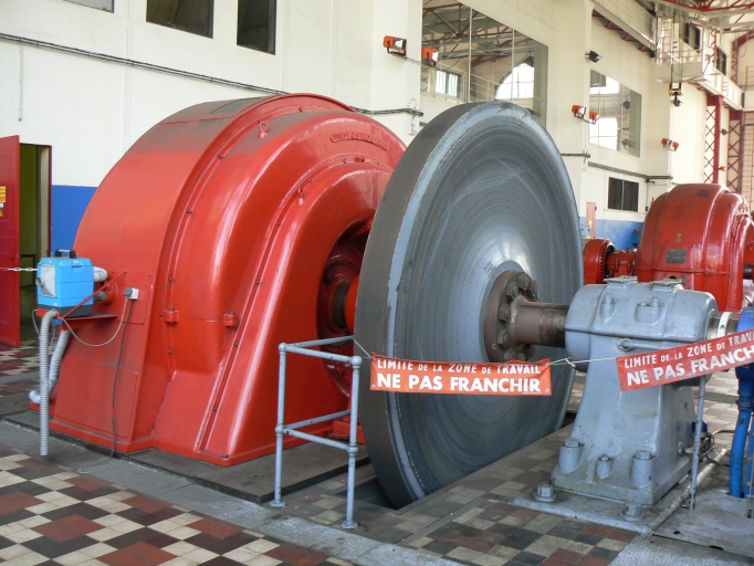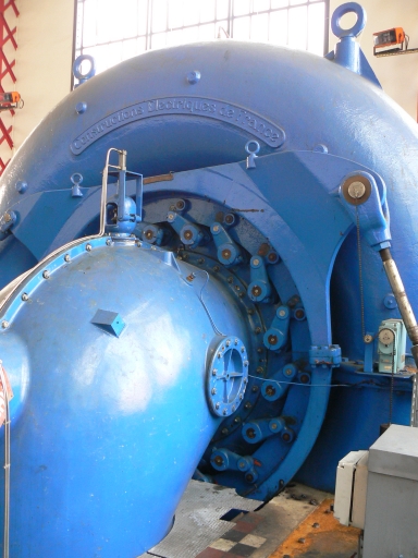 Cette unité de production d'énergie située dans la salle des machines est composée d'une turbine hydraulique de type Francis associée à un alternateur triphasé.
