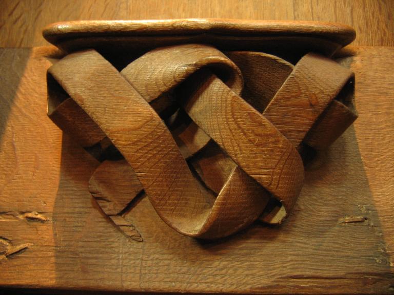 Sur la miséricorde : enchevêtrement d'un ruban.