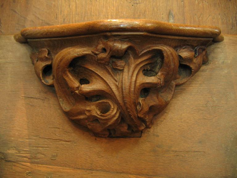 Sur la miséricorde : une grande feuille ou une algue se déploie sur toute la miséricorde.