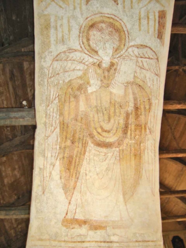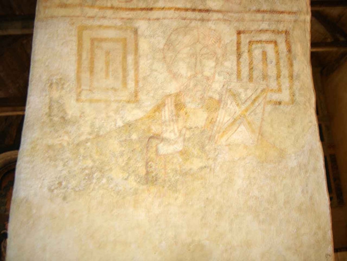 Sur l'intrados de la deuxième arcade sud de la nef sont représentés deux personnages en pied, identifiés par les inscriptions qui les accompagnent : Michael et Melchisedech.