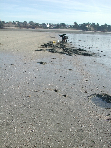 Le territoire des pêcheuses de coques, appelées coquères, était situé sur les "banches du Baye", au débouché de l'Arguenon. Les "coquères"opéraient dans la fouérouse (vases molles) pour piloter ou gratter la vase avec leurs seules mains comme outils. Le retour de pêche avec les pouches (poches) sur le dos, lourdes parfois d'un mannequin (manne d'une portée d'environ 25 kilos), pouvait s'avérer très pénible. Marie Gillorin dite "Maria" et Anne Josselin dite "Rikita", Françoise Pilar furent parmi les dernières pêcheuses de coques à Saint-Jacut. Elles ont aujourd'hui été remplacées dans l'Arguenon par les pêcheuses à pied professionnelles qui se déplacent de baie en baie en fonction du classement des gisements de coquillages. Les mareyeuses achetaient les coquillages et les poissons aux pêcheurs à pied, dont Yvonne Aubin, qui fut l'une des dernières marchandes de poisson de Saint-Jacut, avec Marie Le Moign et Marguerite Aubin. En 1930, il y avait 26 marchandes de poisson à Saint-Jacut pour une population de 1100 habitants. Ces mareyeuses allaient vendre la pêche aux halles de Dinan. Les marins embarqués pouvaient aussi aller pêcher à pied ou en bateau les coquillages (moules) sur les îlots ; cela nécessitait de posséder une carte et des étiquettes sanitaires pour vendre le produit de sa pêche (témoignage de Maurice, dit Pierre Aubin) Les outils de pêche à pied repérés et étudiés sont les suivants : un panier pour les coquillages, une have à chevlin, un havenet, une senne, une fourche pour les vers de vase, une ligne en crin de cheval et une gripette pour pêcher les araignées.