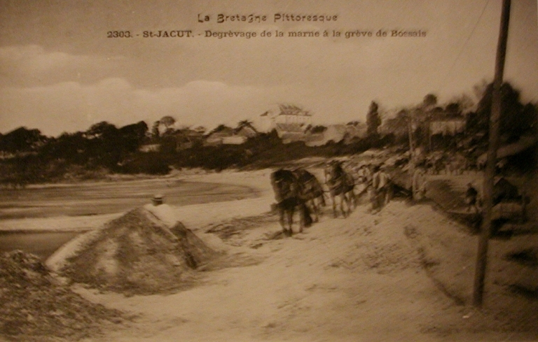 Depuis au moins le 18ème siècle, d'après les sources écrites, l'estran fournit des ressources minérales pour alimenter les terres en amendements calcaires. Au début du 18ème siècle, les baux des métairies de l'abbaye de Saint-Jacut spécifiaient l'obligation d'engraisser pendant le cours du bail certaines terres ou prés. C'est ainsi que Joseph Morvan et Marie Hervé son épouse, prenant à bail en 1748, la métairie de la Guérinais à Saint-Jacut, s'engagèrent à engraisser pendant le cours du bail le pré au vicaire de 18 charretées de many (marne) (AD 22, Rôle Rentier de la Royale Abbaye de Saint-Jacut, 1751). Cependant, les routes étaient défoncées par ces charrois quotidiens. A Beaussais, en pleine saison, on comptait jusqu'à '80 colliers' (chevaux attelés) par jour. Le conseil d'arrondissement de Dinan, dans sa séance du 13 octobre, demanda qu'il soit accordé des subventions pour faciliter l'accès à la marnière de Beaussais, très fréquentée, les défoncements qui se sont produits dans le chemin qui y conduit en rendent l'abord très difficile. La pelle du type 'pelle de cantonnier', appelée localement 'palis', était couramment utilisée pour charger la marne. Cet outil traditionnel a pu aussi être utilisé pour récolter les sables saturés de sel, afin d'en extraire le sel pur par chauffage de la saumure et par évaporation dans des bacs de terre cuite et des bouilloires métalliques. Ce droit de bouillir appartenait au seigneur du lieu. En 1751, on trouve mentionné dans le Rentier de l'Abbaye de Saint-Jacut : le nombre de quatre vingt seize bouillons 2/3 de sel menu dû à messieurs les Religieux de l'abbaye royale de Saint-Jacut pour chaque année et en différents termes par plusieurs particuliers de la paroisse de Lancieux pour cause des héritages desquels ils jouissent. L'opération de 'dégrèvage' de la marne était inscrite dans les baux accordés au fermier : 'baux à terme de marne', ce qui signifiait que l'utilisation de la marne était limitée après 15 ans de bail, afin d'éviter d'épuiser les terres. Un dicton disait : La marne enrichit les pères et ruine les enfants. La pelle à marne étudiée est une pelle du type pelle de cantonnier, couramment utilisée pour charger la marne. Cet outil est daté du 3ème quart du 20ème siècle.