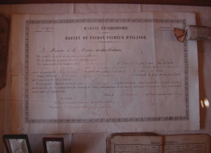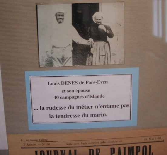 L'association 'Plaeraneg Gwechall' (Ploubazlanec Autrefois) a été créée en 1994, après la réalisation d'une première exposition sur la grande pêche (Terre-Neuve-Islande) et la pêche côtière à Ploubazlanec. Patrick Peltier, Paul Thépaut, Pierre Ploury et Louis Corouge en furent les fondateurs. A la suite de cette exposition temporaire, ils ont ouvert le musée associatif 'Mémoire d'Islande' dans la maison de François Le Buhan, ancien marin pêcheur (3 campagnes à Islande), acquise par la municipalité. Les collections du musée, datées pour la plupart du 19ème siècle, sont des dons et des dépôts apportés par les familles de marins, ou encore des acquisitions de l'association 'Plaereneg Gwechall' qui gère le musée. L'association, constituée de bénévoles anime aussi le 'circuit des Islandais' : Mur des disparus, chapelle de Perros-Hamon et chapelle de la Trinité, Croix des veuves. Cette route initiatique est jalonnée d´histoires d´hommes et de femmes que Pierre Loti a racontées de façon romanesque dans son ouvrage 'Pêcheurs d´Islande' à l'image du 'Grand Yann' de Pors-Even. Les collections du musée comprennent à la fois des documents originaux (livres de bord, lettres de marins, brevets de commandement, portraits photographiques, coupures de journaux, cartes postales, photos), des objets liés à la grande pêche et à la vie de quotidienne des marins, des équipements de navigation et des maquettes de navires. Nous avons sélectionné sur une centaine de collections, 30 d'entre elles qui nous semblaient les plus caractéristiques de la thématique retenue par l'association : la grande pêche à Islande. Nous avons étudié en particulier la maquette du navire goélette 'L'Aurore' du capitaine Yves Dénes de Pors Even, réalisée par E. Van Bossum au cours de la seconde moitié du 20ème siècle.