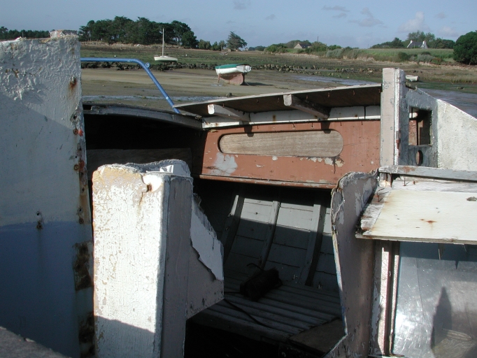 La coque est très fatiguée ; le pont et la cabine sont en partie défoncés.