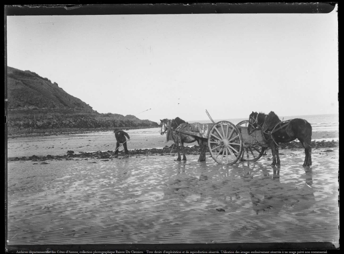 Différentes techniques de pêche à pied témoignent des usages de l'estran en baie de St-Brieuc : le moulier, pour pêcher les moules 'en torche' (sorte de couteau confectionné avec unmorceau de cadre de vélo, retaillé), le havenet à crevettes (en croix) et le havenet à pouillot d'affare. Le pouillot remontait le Légué selon les témoignages oraux. On pêchait encore des palourdes à la main à l'embouchure du Légué et des huîtres sauvages. Le lançon était pêché à l'aide d'une bêche arrondie pendant la nuit et faisait l'objet de bagarres avec les 'Cessoniers". Les gros lançons, salés, étaient mis à sécher pendant plusieurs mois dans la cheminée. La pêche à pied et la collecte du sable et de la marne ont représenté des pratiques vivrières jusqu'au milieu du 20ème siècle pour les habitants du Légué (souvent réservées aux femmes), en alternance avec la pêche côtière et la grande pêche.